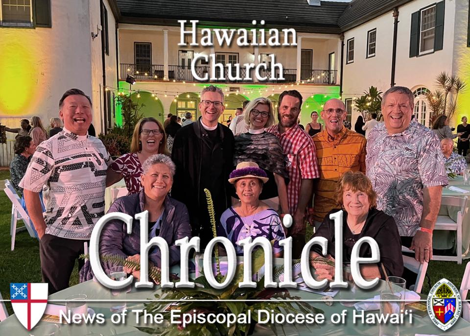 | | This issue's header photo was taken at Seabury Hall's Annual Pāʻina fundraiser on Saturday, October 18. Representing the Diocese on behalf of the Bishop are: Seated L-R, Ms. Kalani Holokai, Ms. Sarah Shim, the Rev. Heather Mueller; Standing L-R, the Rev. George Wong, Ms. Julia Golding, the Rev. Christopher Golding, the Rev. Amy Crowe, Mr. James Crowe, Mr. Joseph Cascio, Mr. Chuck Spence (Contributed photo) | | |