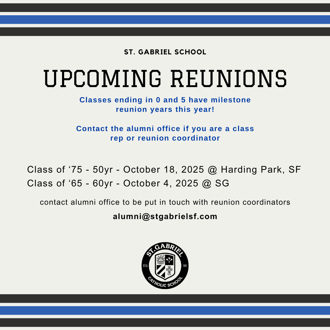 Update your contact information with St. Gabriel so you can receive news and announcements about alumni events and reunions!