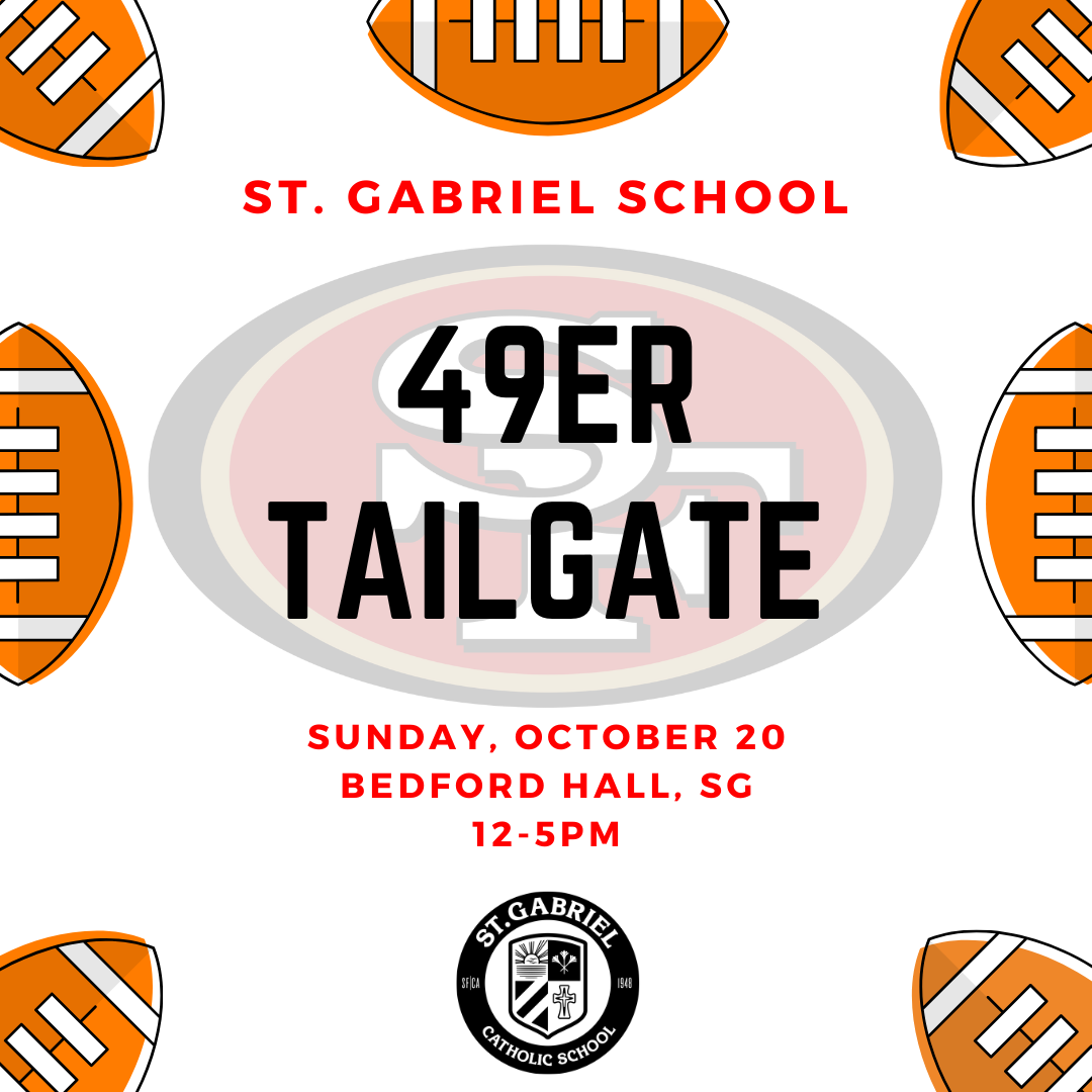 The St. Gabriel Parent Organization invites you to attend the Fall Tailgate! Watch as the 49ers take on the Chiefs and enjoy food, drinks and activities for the kids!