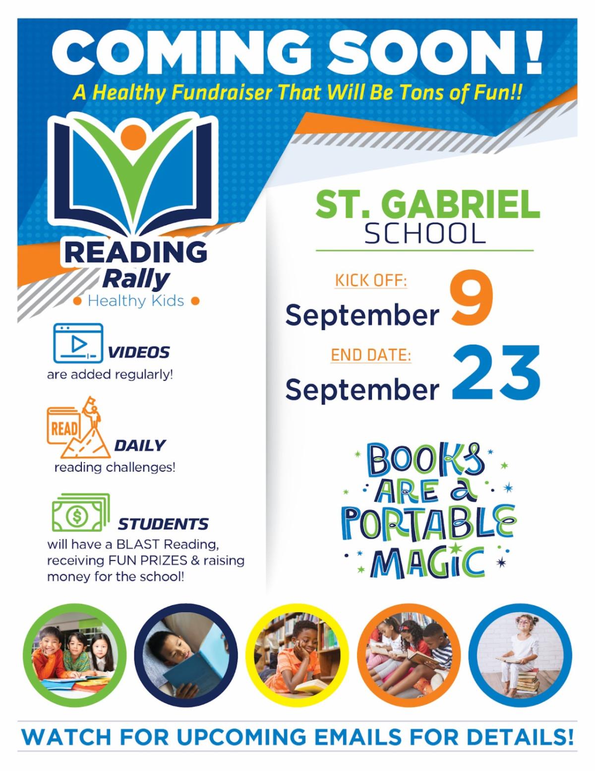 "Reading Rally" here at St. Gabriel. We hope that all of our students will participate and make it a huge success.