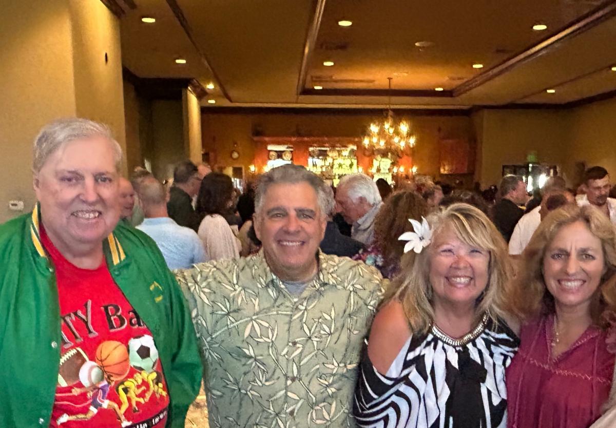 Sandy Acevedo '75 emailed this picture of former teacher John Donohue, Aram Kardzair '75, Sandy Acevedo '75 and Claudia Cournale Kardzair '75.