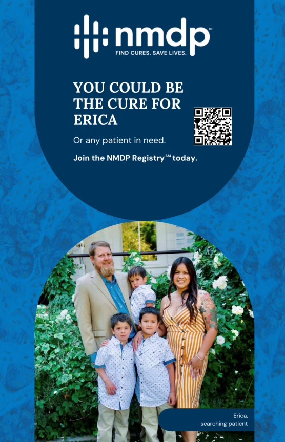 In solidarity with Erica and her family, we have the opportunity to extend our support in a meaningful way by joining the National Marrow Donor Program (NMDP) database to find Erica a match.
