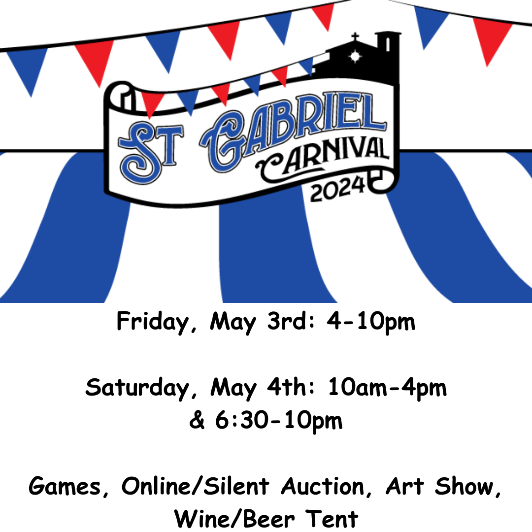 The St. Gabriel Parent Organization invites you to attend the Spring Carnival! There is something fun for the whole family! Buy tickets online or in person.