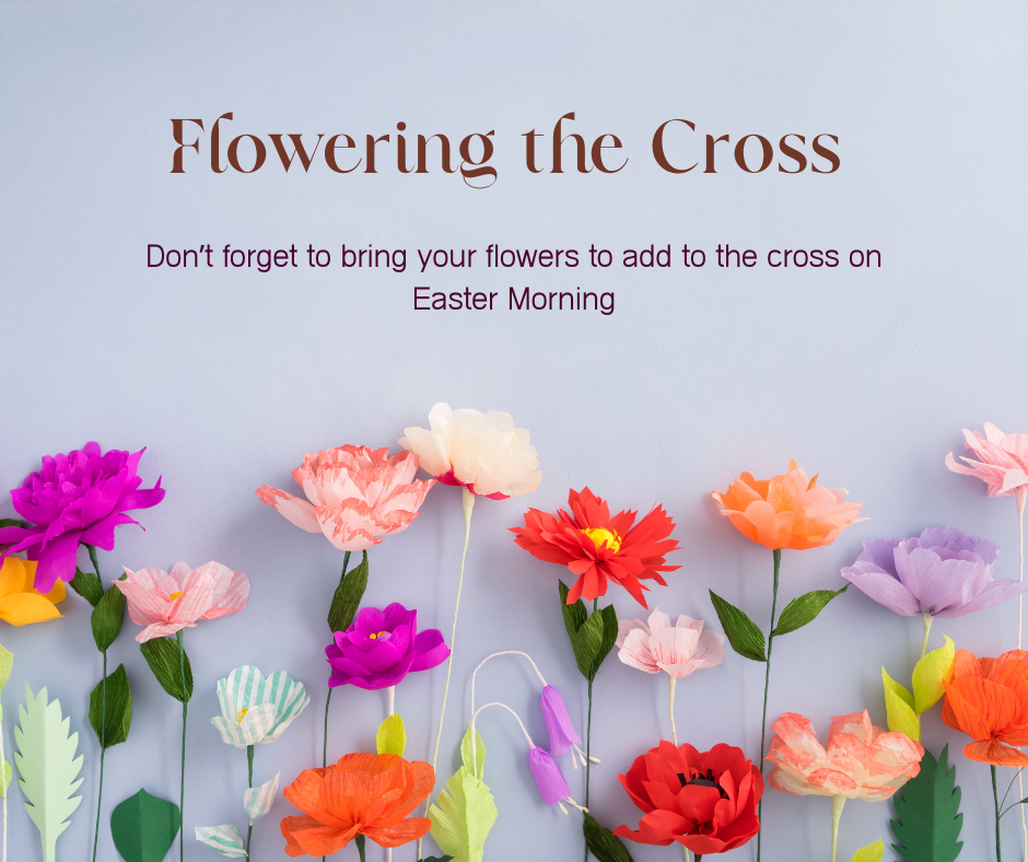 Don't forget to bring your flowers to put in the cross out front!