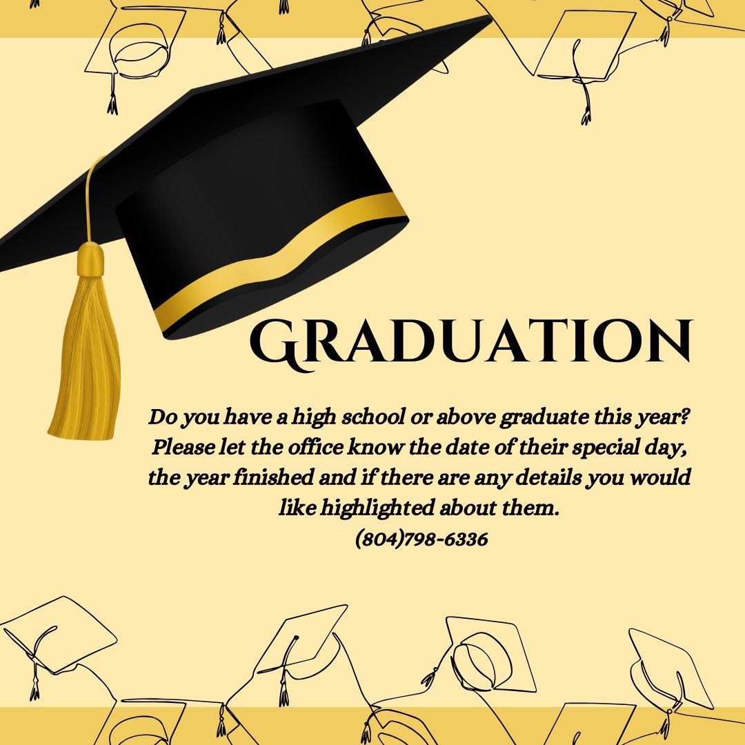 - May 18th- Graduate Sunday/Bart Goodbye/End of Year Party 6-7:30p