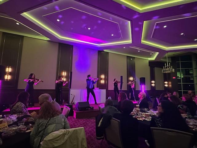 The cultural hall featured a Cabaret setting with elegant table décor, delicious mezza and dessert platters, spectacular lighting, and the dynamic music and performances of the musicians.