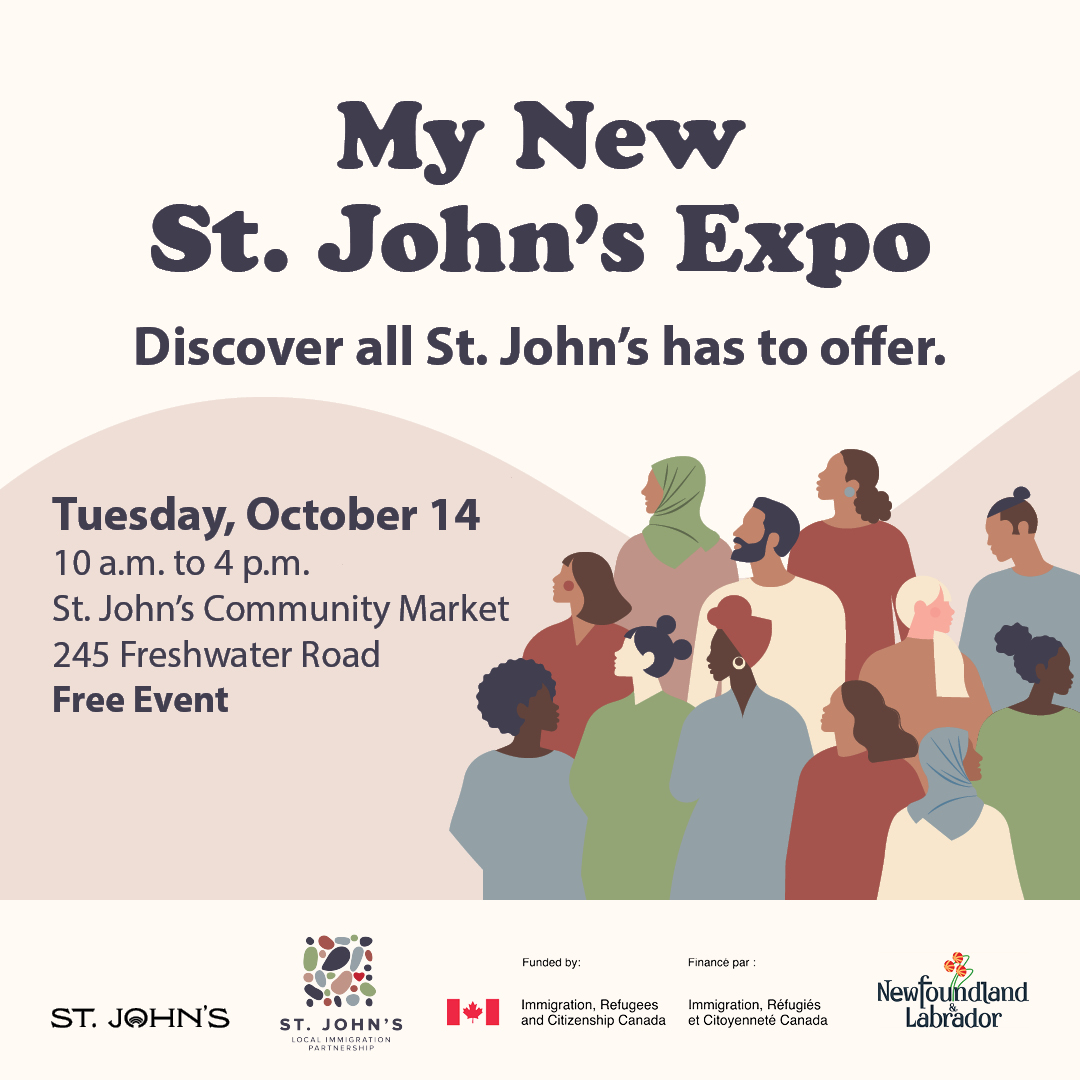 Does your company have employees that are newcomers to the City of St. John’s? Don't miss MY NEW ST. JOHN'S EXPO today, October 14 from 10 a.m. to 4 p.m. at the St. John’s Community Market, 245 Freshwater Road. Admission is free. This event is an opportunity for new residents to discover what St. John’s has to offer, connect with community organizations and learn about programs and services. For the full list of exhibitors, visit MyNewStJohns.ca.