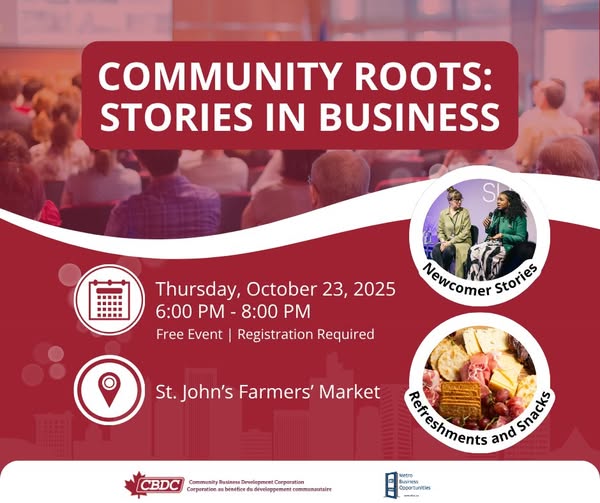 Small Business Week is not just a celebration; it’s a time to take advantage of the resources and events designed to help your business start or grow. You can connect with the St. John’s Business Information Centre on October 23 at the Community Roots: Stories in Business event hosted by the Community Business Development Corporation (CBDC) and Metro Business Opportunities at the St. John’s Community Market. Hear inspiring stories from entrepreneurs during the panel discussion, enjoy refreshments, and connect directly with business support agencies at the Small Business Café. Admission is free and you can register here.