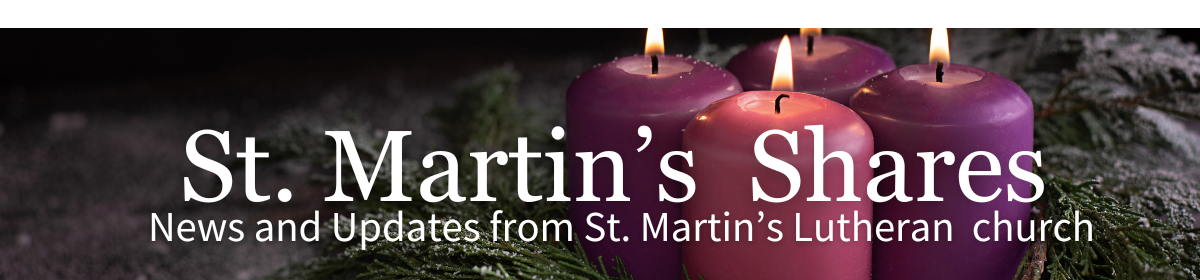 Service is one of our core values at St. Martin's and the Serves Committee would like to draw your attention to some serving opportunities available during Advent. Whether you are new to us and wondering how to get involved with our service ministries, or if you're feeling overwhelmed, adrift, or defeated by the current state of the world and you've decided today's the day you want to jump in, help, and make a difference, please click here for a current list of opportunities or feel free to check in at the welcome desk for a copy of the list. Email questions to serves@saintmartins.org