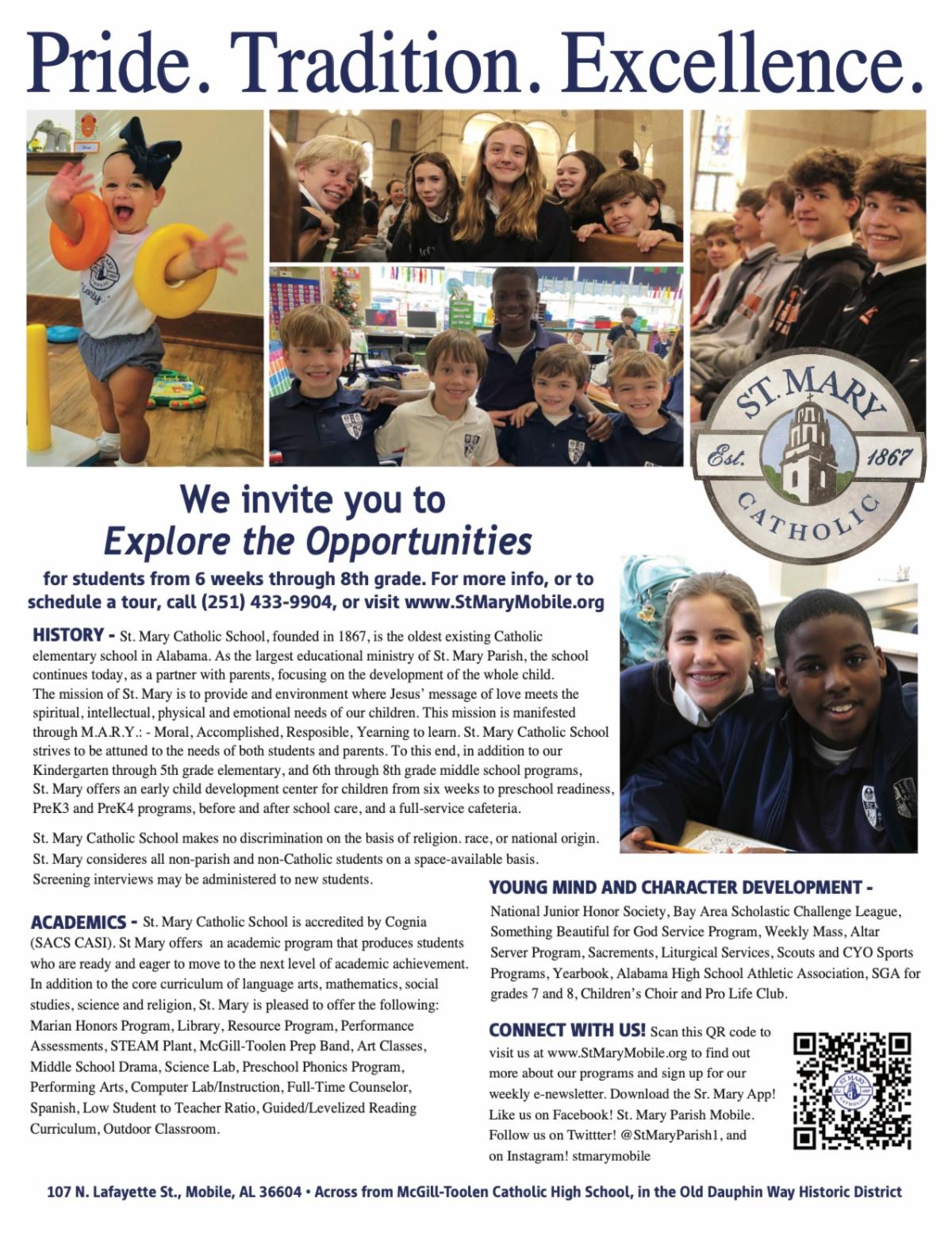 Contact the School Office at (251) 433-9904 for more information or a personal visit at any time!