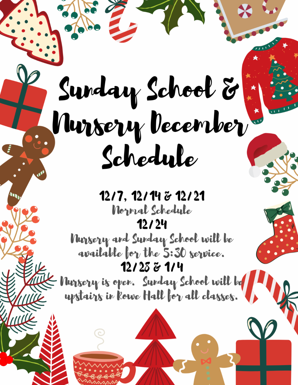 • 12:15 – UK Rehearsal (continues each Sunday thru Dec 21)