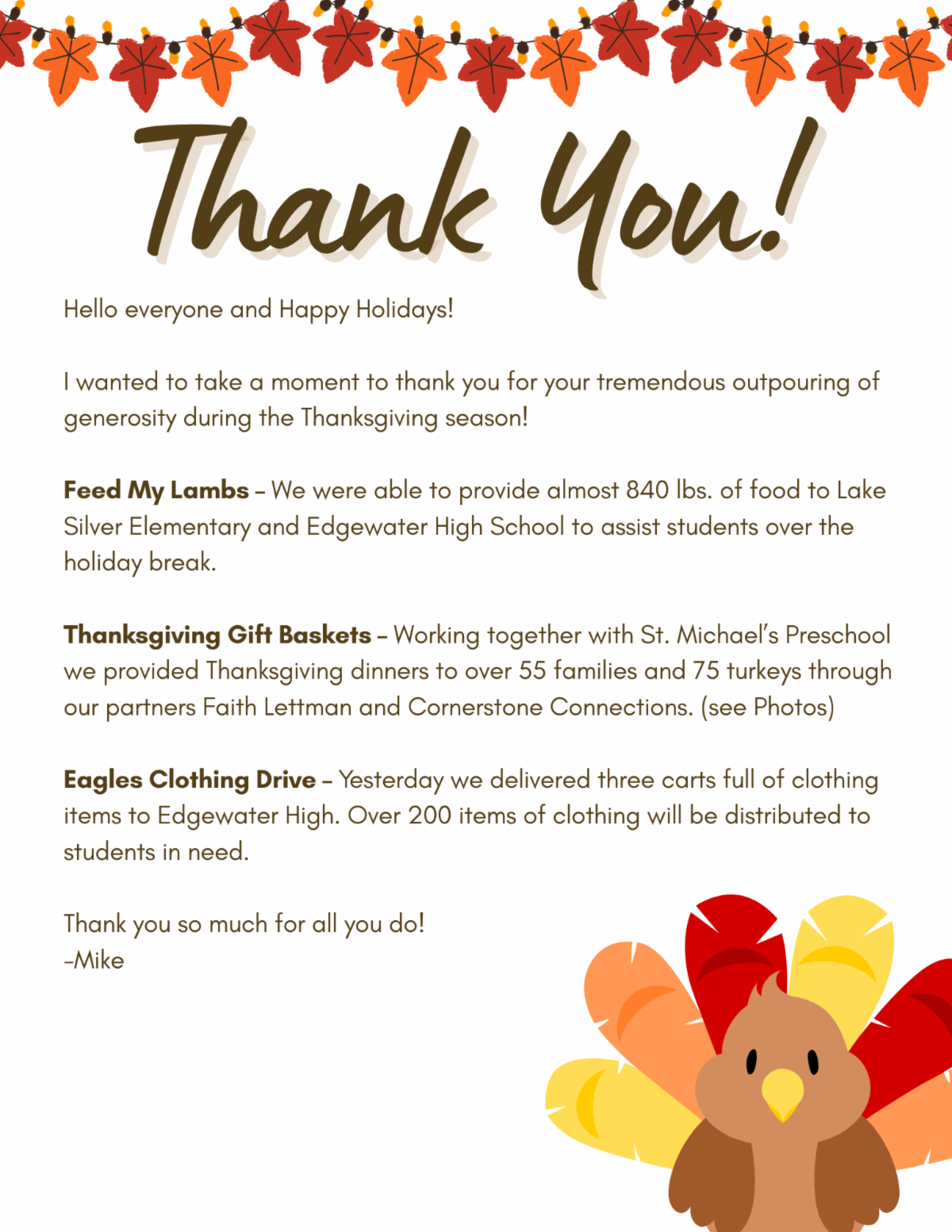 This year we are working with three schools in OCPS to bring Christmas cheer to those in College Park and greater Orlando that may be facing a difficult holiday season!