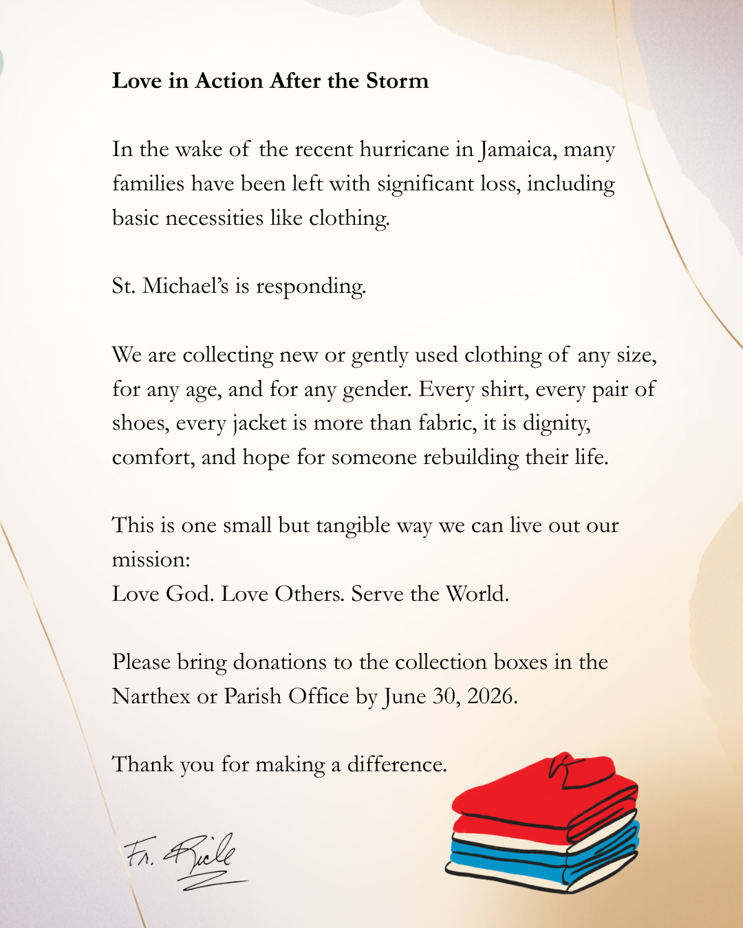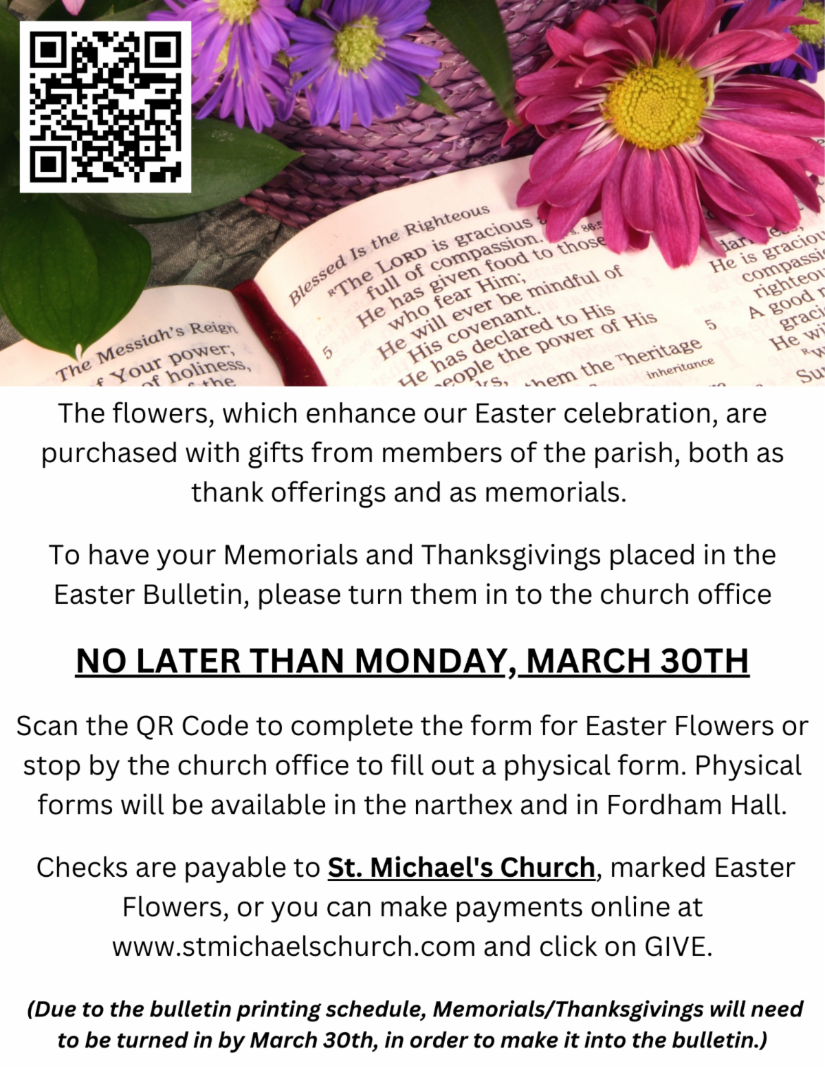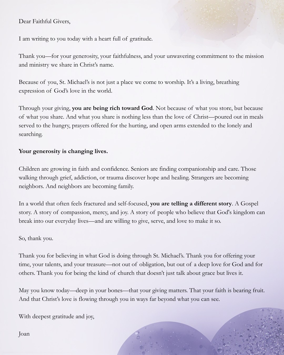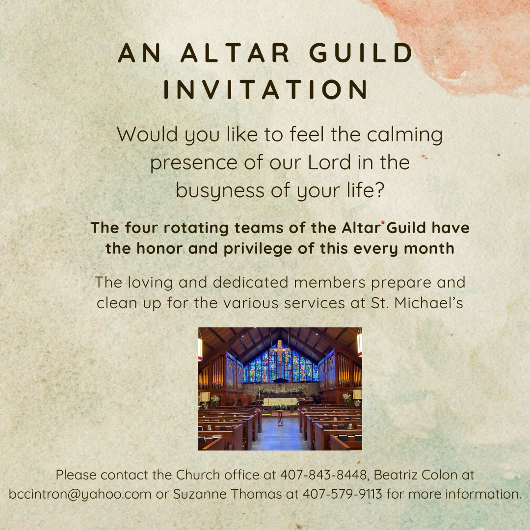 If you or your loved one has experienced healing and no longer needs to be on the prayer list, we ask that you let us know. It is a joy to give thanks to God for the blessings of restored health and life, and your update helps us make room to lift others in prayer who are in need of support from the St. Michael’s community.