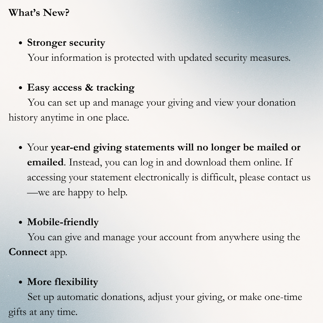 • Thank you for your faithfulness—in worship, in giving, in serving.