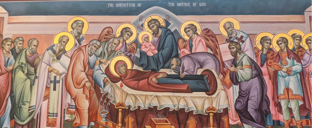 The angels, as they looked upon the Dormition of the Virgin, were struck with wonder seeing how the Virgin went up from earth to heaven. The limits of nature are overcome in you, O pure Virgin; for birth-giving remains virginal and death is united to life; a virgin after childbearing and alive after death, you ever save your inheritance, O Theotokos.