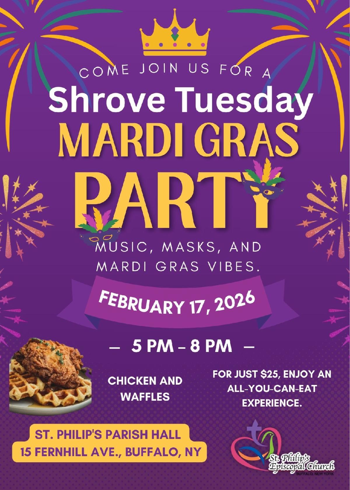 All are invited to join in a Mardi Gras / Shrove Tuesday celebration at St. Philip's. Come and feast before we fast!