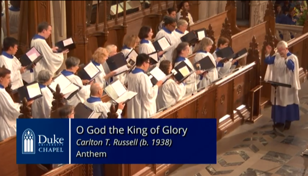 The conductor is Dr. Philip Cave, a former member of the well-known early music chamber choir, The Tallis Scholars. He is Associate Conductor of Chapel Music at Duke.