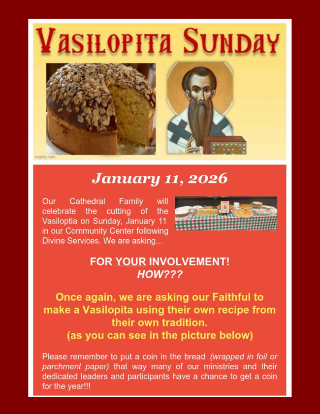 COFFEE HOUR TODAY – Is sponsored in loving memory of Vayani Mitsou and Ioannis Mitsou by Vaya Handras and family.