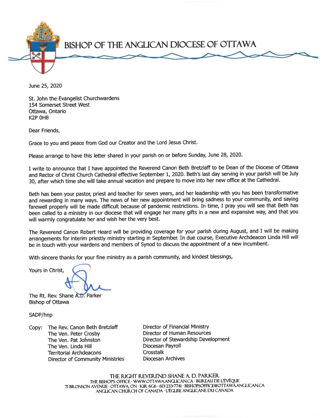 BGen (Ret’d) The Venerable John Fletcher, Honourary Assistant