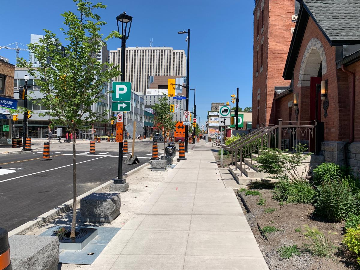 Almost completed, Elgin Street is looking fabulous! And right outside our front door are two new trees, four new seating blocks, and garbage/recycling containers. Thank you, City of Ottawa!