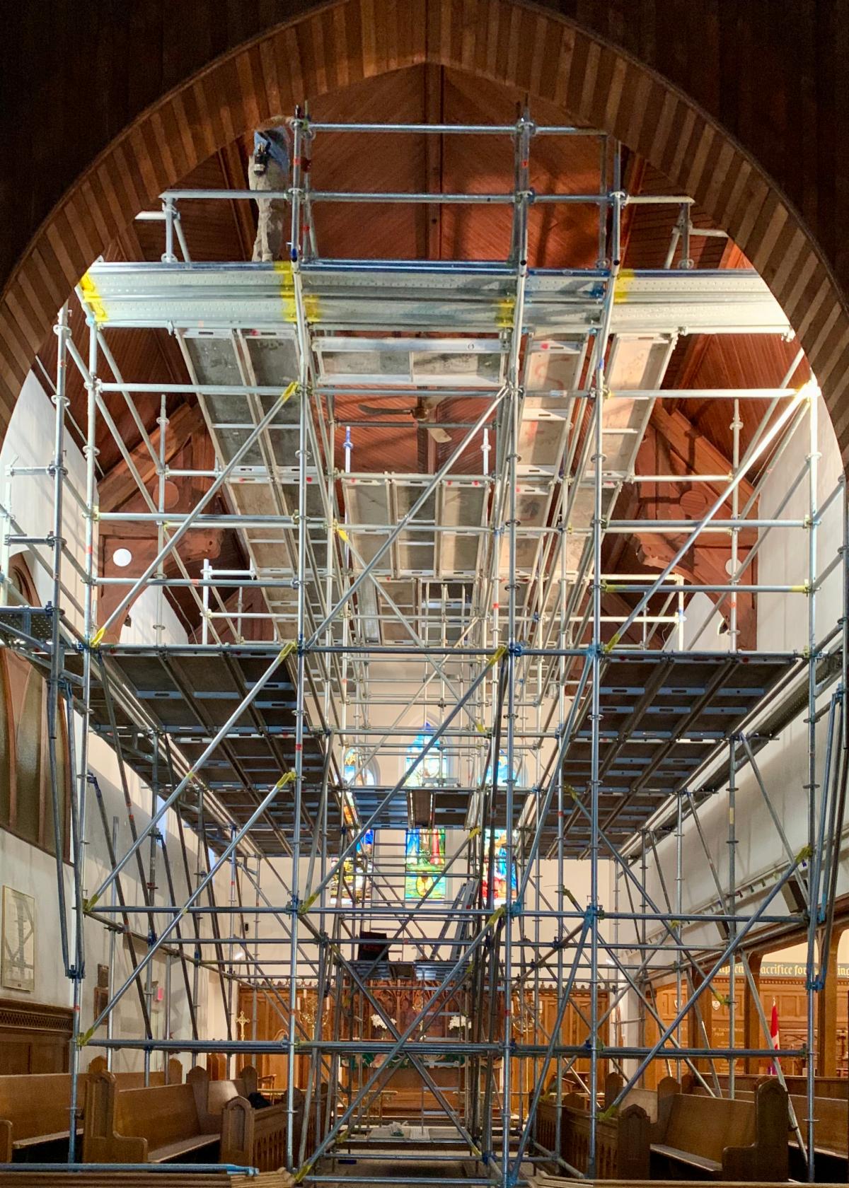 A new look for the Chancel! Lightbulbs are being replaced and high level cleaning is being done. For scale, that is indeed a person way up on the left hand side. Fortunately, they aren't afraid of heights, like our Rector!