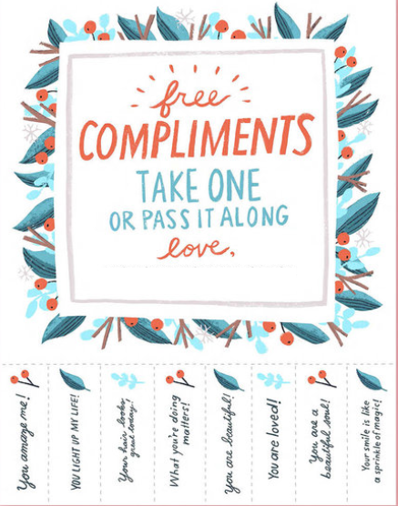 This time of year can be hard on the soul, as the days shorten and darkness falls more quickly. Around St John’s, The Well, and The Community Thrift Shop, you will find posters with tear-off tags of free compliments to pass along to brighten someone’s soul and day. Enjoy!