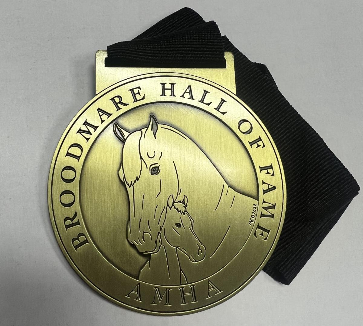 AMHA is now awarding greater recognition of these important Morgans. Starting in 2023, the current recorded owner of each mare inducted into the Broodmare Hall of Fame will receive a beautiful medallion designed by Maretta Kennedy. We have begun sending mailings to the current recorded owners of these horses to verify their shipping address for the medallion.