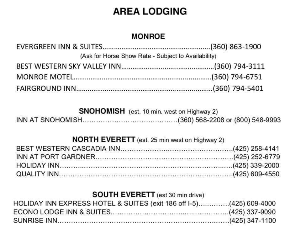 Make your reservations early whether at a hotel, a space for an RV or trailer at the Oregon Horse Center or elsewhere, or at a home or B&B! You might also be able to rent a motorhome.