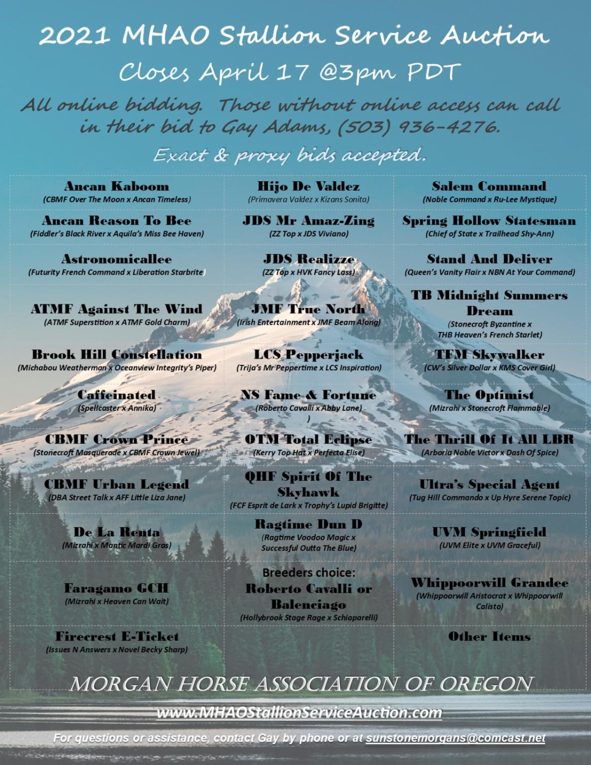 MHAO publishes the Breeders' Cup Futurity Booklet annually to feature the stallions from our Stallion Service Auction and our Futurity horses. This booklet is distributed at the Oregon Morgan Classic, the Morgan Medallion, and C-Fair horse shows as well as at Nationals (others as our supply allows). Ads are needed to pay for its printing and distribution.