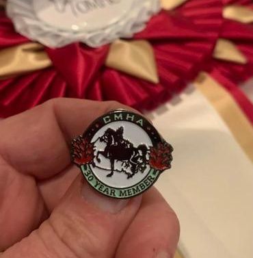 What a lovely pin! Genevieve Kendell-Hayes received this as a 30 year member of the Canadian Morgan Horse Association.