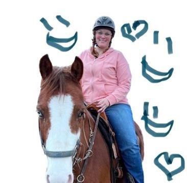 A very happy Morgan owner, Becky Bean, as she takes the first ride on her home-raised mare, Scandias Marvelous Reverie, at Silver Mesa Morgans.