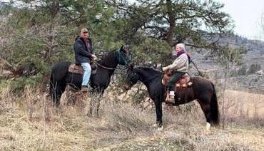 The Okan Morgans are out on the trail this spring- pictured here are Don Curtis on Okan Contessa and Corene Curtis on Okan Similkameen MisT.