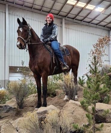 Leanne Roth and her Morgan give the indoor trail course at the Oregon Horse Center Mountain Trail a go!