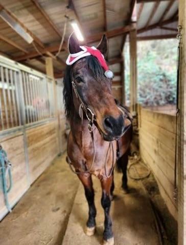 Does it get any cuter than this? Rocky, owned by Leanne Roth, poses before a December trail ride.