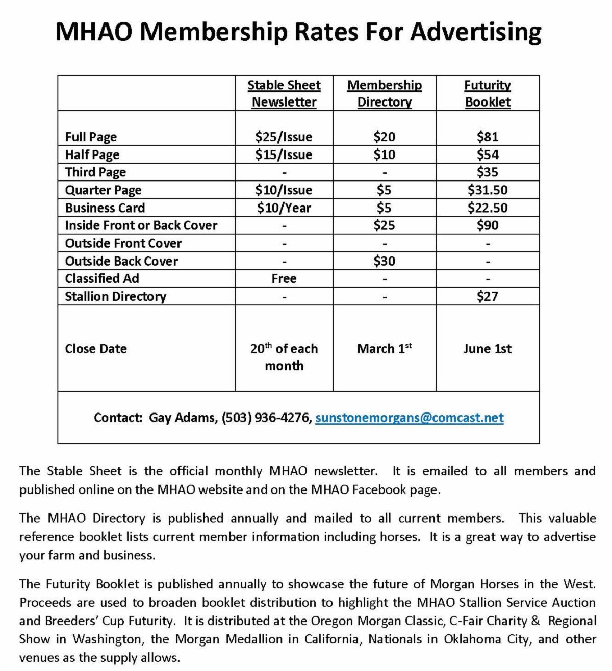 Gay Adams, Acting Editor | Morgan Horse Association of Oregon