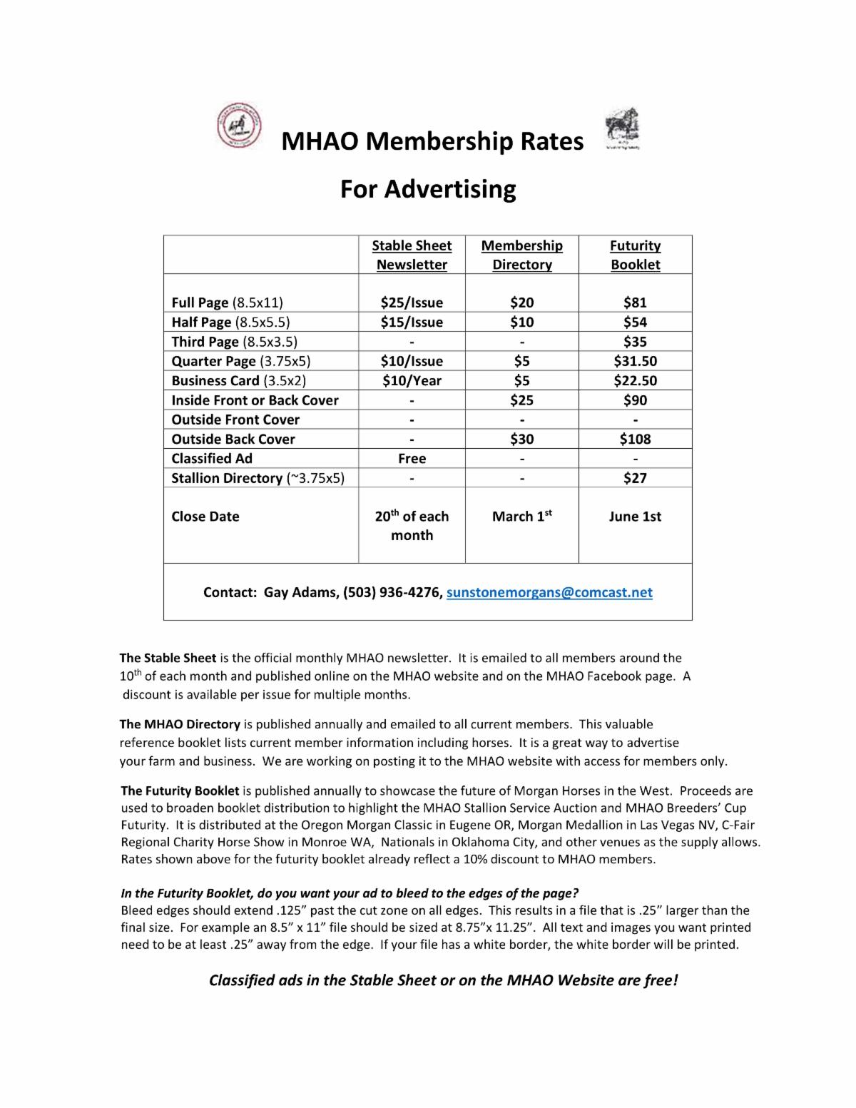 We are starting over for the new year. If you would like your ad included again, please resend it to me at sunstonemorgans@comcast.net.