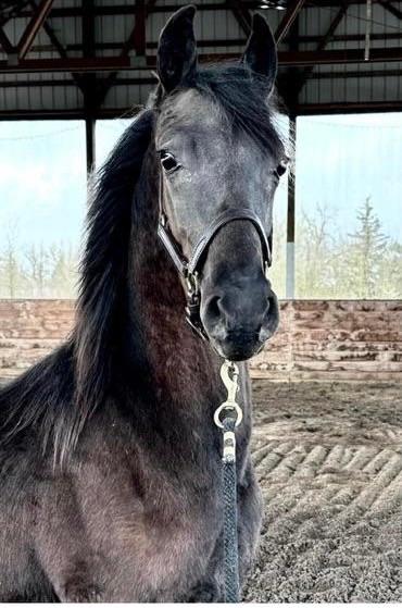 BTTR Independence (Brookhill Constellation x Four Hearts Lady), 3 year old colt, seen here on his second day ever doing trail obstacles in hand.