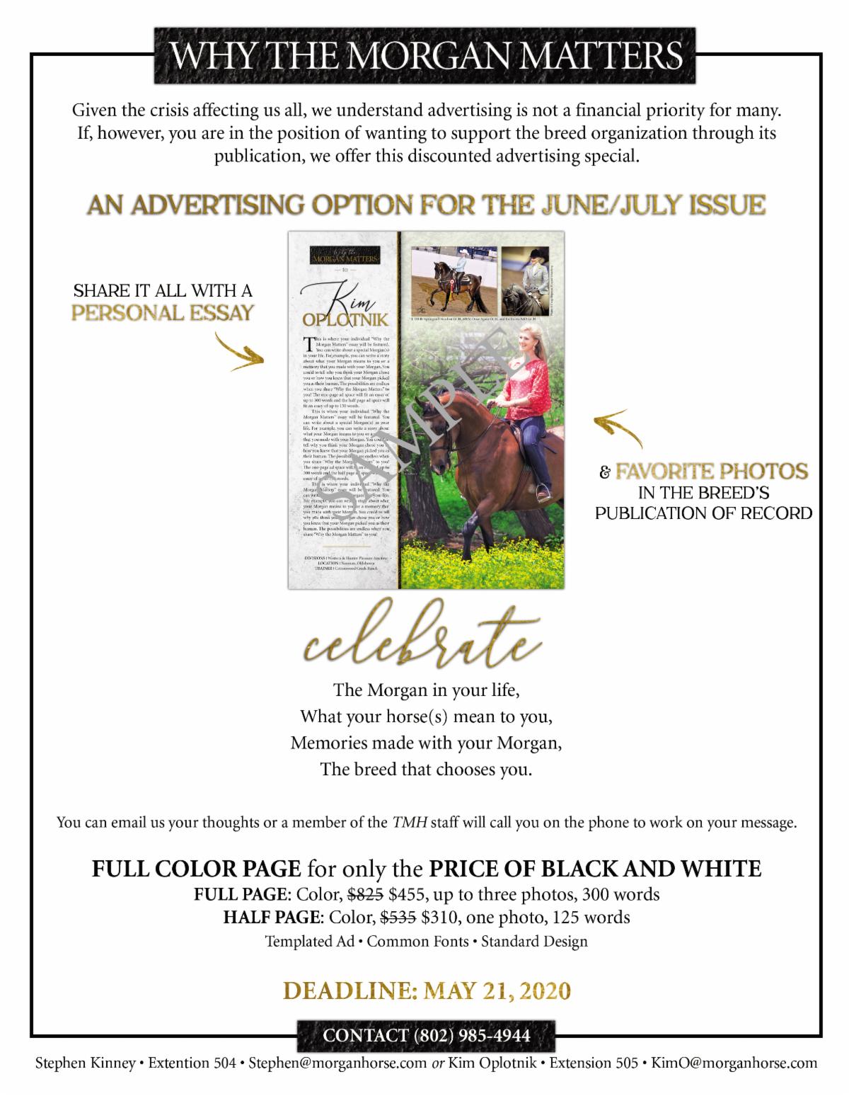 All that said, the health and welfare of all the people and horses in our Morgan community are our number one concern. You come first. We know this pandemic will pass. And when it does, it will be so wonderful to see all of you and your horses again.