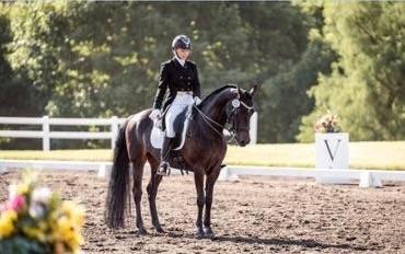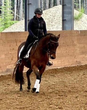 Scandias Ballerina Girl (Scandias Trademark x Scandias Private Dancer, UVM Coming Attraction) owned by Helen Kwong and ridden by Casey LaFleur at a Lillian Evaniew-Phelan clinic.