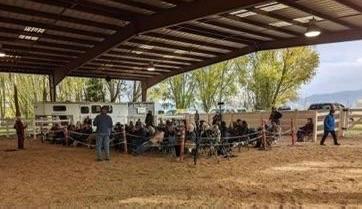 A large group gathered at Carole Mercer's ranch this fall to learn about Carole's liberty training methods.