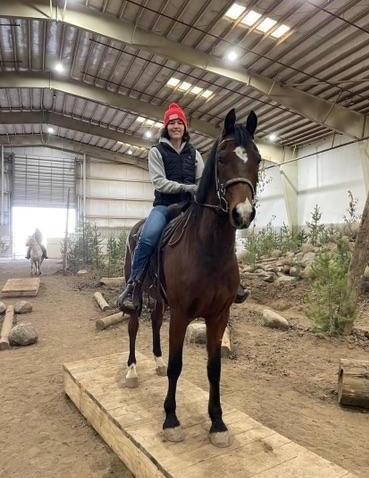 Leanne Roth and Chance at the Oregon Horse Center haul-in trail course.