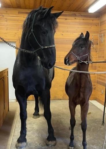 Donald the draft and a weanling Morgan colt by Merriehill After Hours (owned by DR Charles Connor), photo by Daryl Hopson.