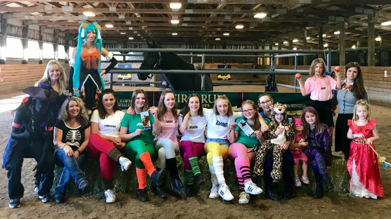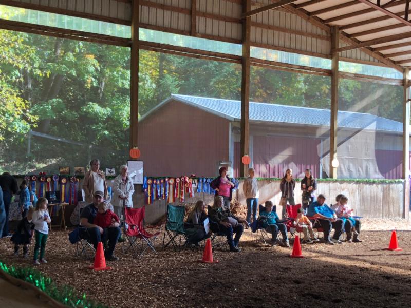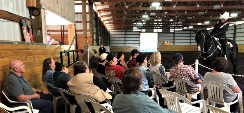 "We had such an awesome day of sharing the Morgan horse with others!! Close to 100 people were in attendance, kids and adults alike, it was truly a family affair. Guests enjoyed a nice treat of homemade chili, chips, cookies, and Halloween treats while watching riding demonstrations showing the Morgan’s versatility and beautiful way of going. They were invited to meet and greet each horse at the barn, helping students groom, and then we offered free rides to anyone interested. It was a jam packed, fun filled day of introducing many new people to the Morgan horse.