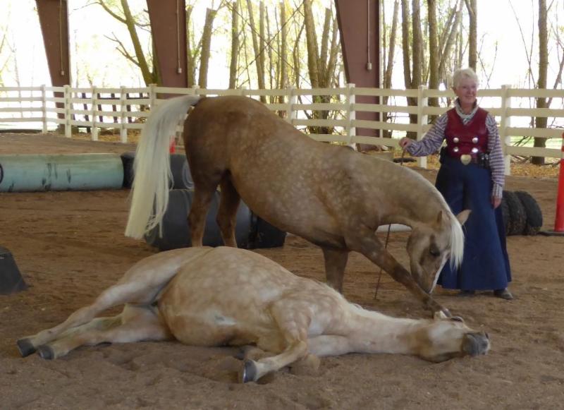 The money will be used for this purpose only and an announcement will be made at OMC each year that the award is in memory of Nancy Falk. Her picture with her Palomino, Gwen, will appear on the perpetual trophy.