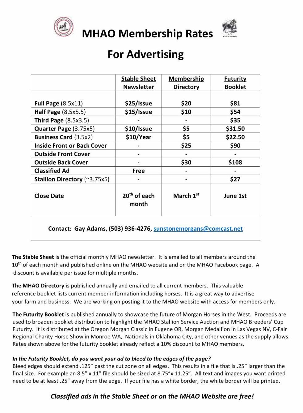We are starting over for the new year. If you would like your ad included again, please resend it to me at sunstonemorgans@comcast.net.