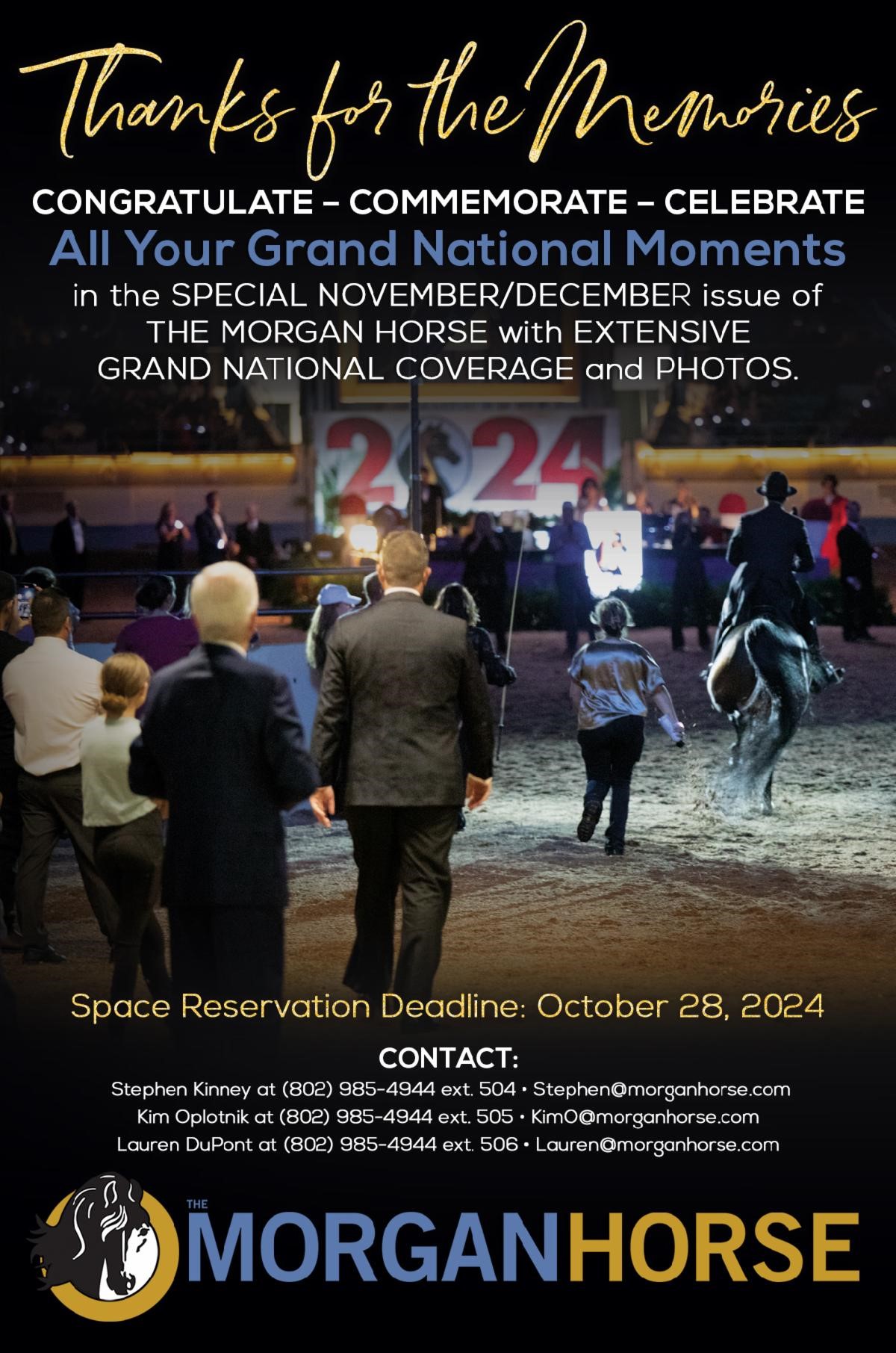 Bidding will begin during the Grand National & World Championship Morgan Horse Show® with the top 10 bids moving to a live auction Friday, March 7, 2025, at the AMHA Annual Meeting & Clinic.