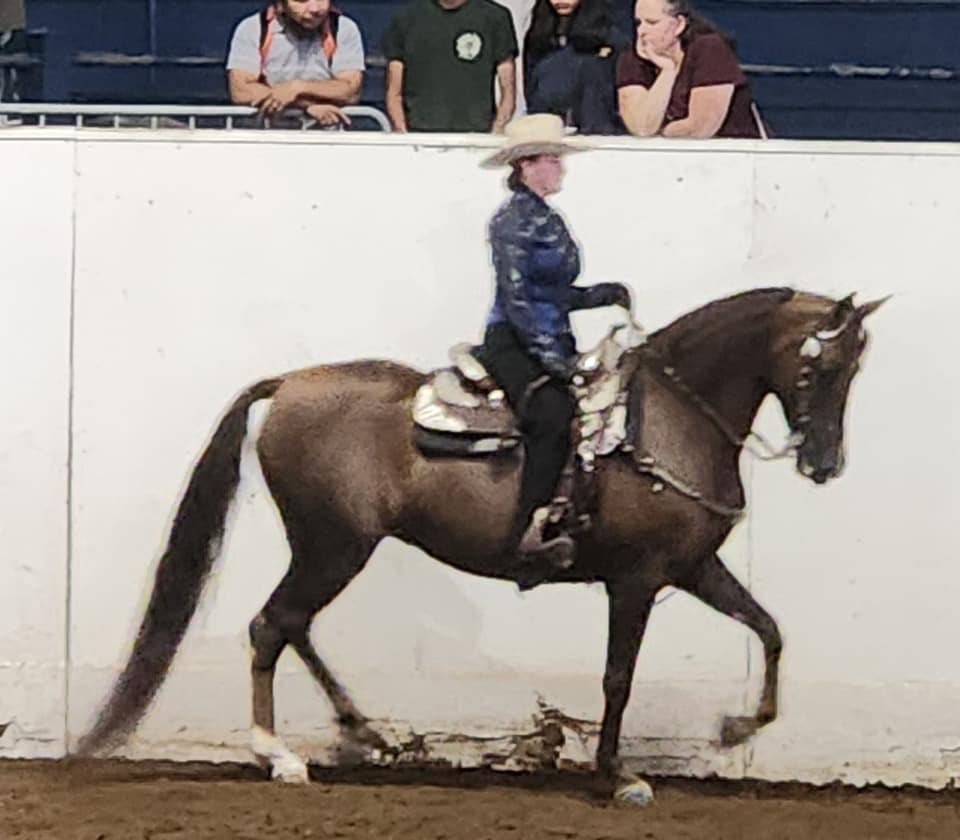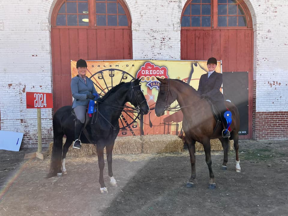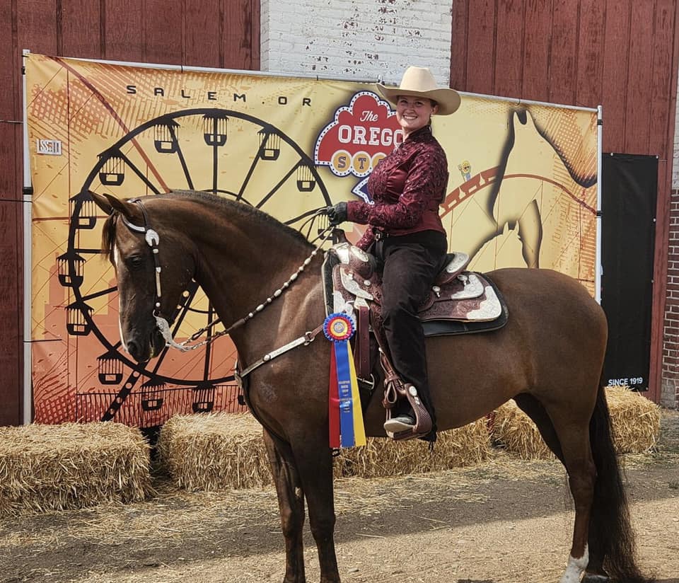 "We had so much fun showing at the Oregon State Fair this weekend! Reba (Raindrops on Roses) and I have been showing Sport Horse/ Hunt Seat in addition to Western Pleasure and Western Dressage and have been loving it! Reba and Kona (Sangre Island Time) were amazing breed ambassadors this weekend at the state fair. They handled the crowds, kids, other animals and loud equipment like champs. Thank you Silver Mesa Morgans for another fun show!"