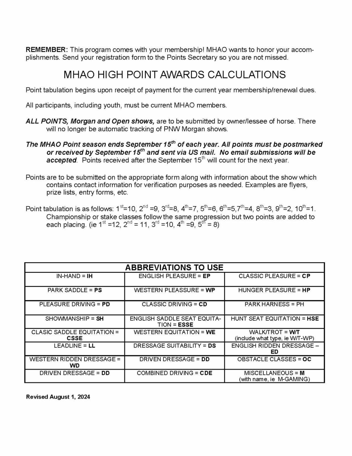 This year's Award Banquet is being planned as a celebration and very fun event. If you compete in anything, be sure to turn in your points by September 15th. If you ride or drive a Morgan horse, get enrolled in the Ride/Drive program and turn in your hours right away. Close date for the Ride/Drive program is October 15th.