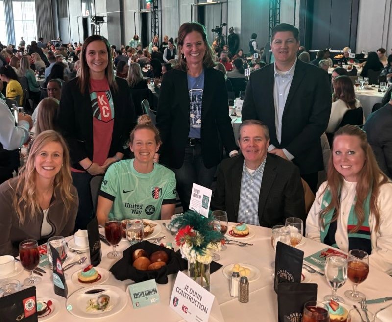 B&D's David Almany had the exciting opportunity to attend the 2025 KC Current Kickoff Luncheon on March 5, hosted by the Greater Kansas City Chamber of Commerce. David was a guest of JE Dunn Construction, who delivered CPKC Stadium, the world’s first purpose-built sports venue for a professional women’s soccer team. He also had the opportunity to meet KC Current forward Kristen Hamilton, who joined the JE Dunn table.