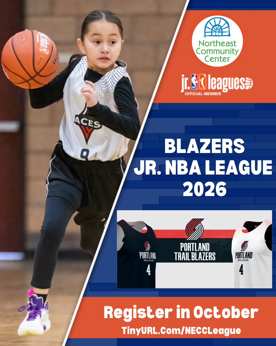 We are thrilled to announce that this year our Youth Basketball League is partnering with the Blazers Jr. NBA program!